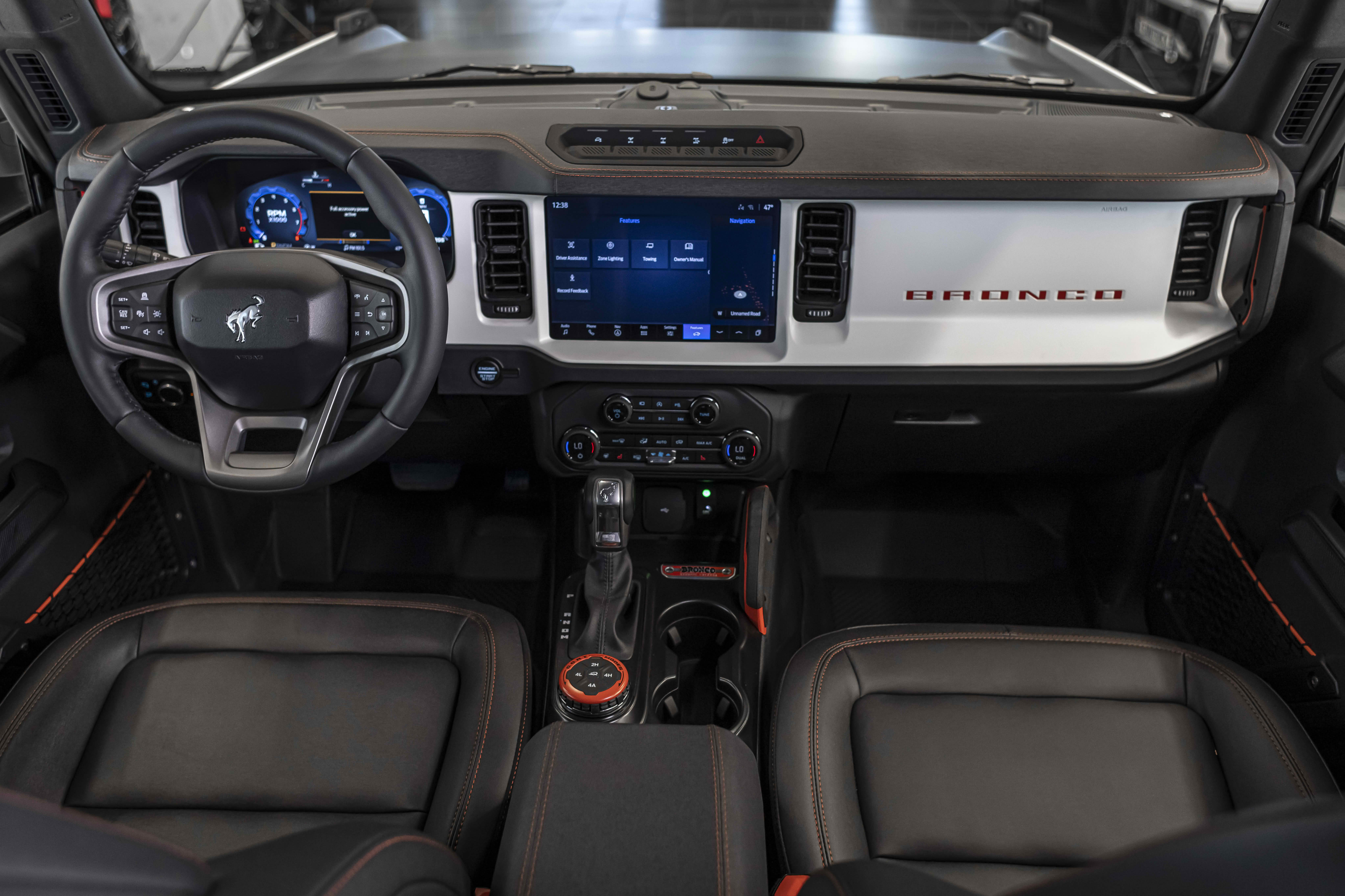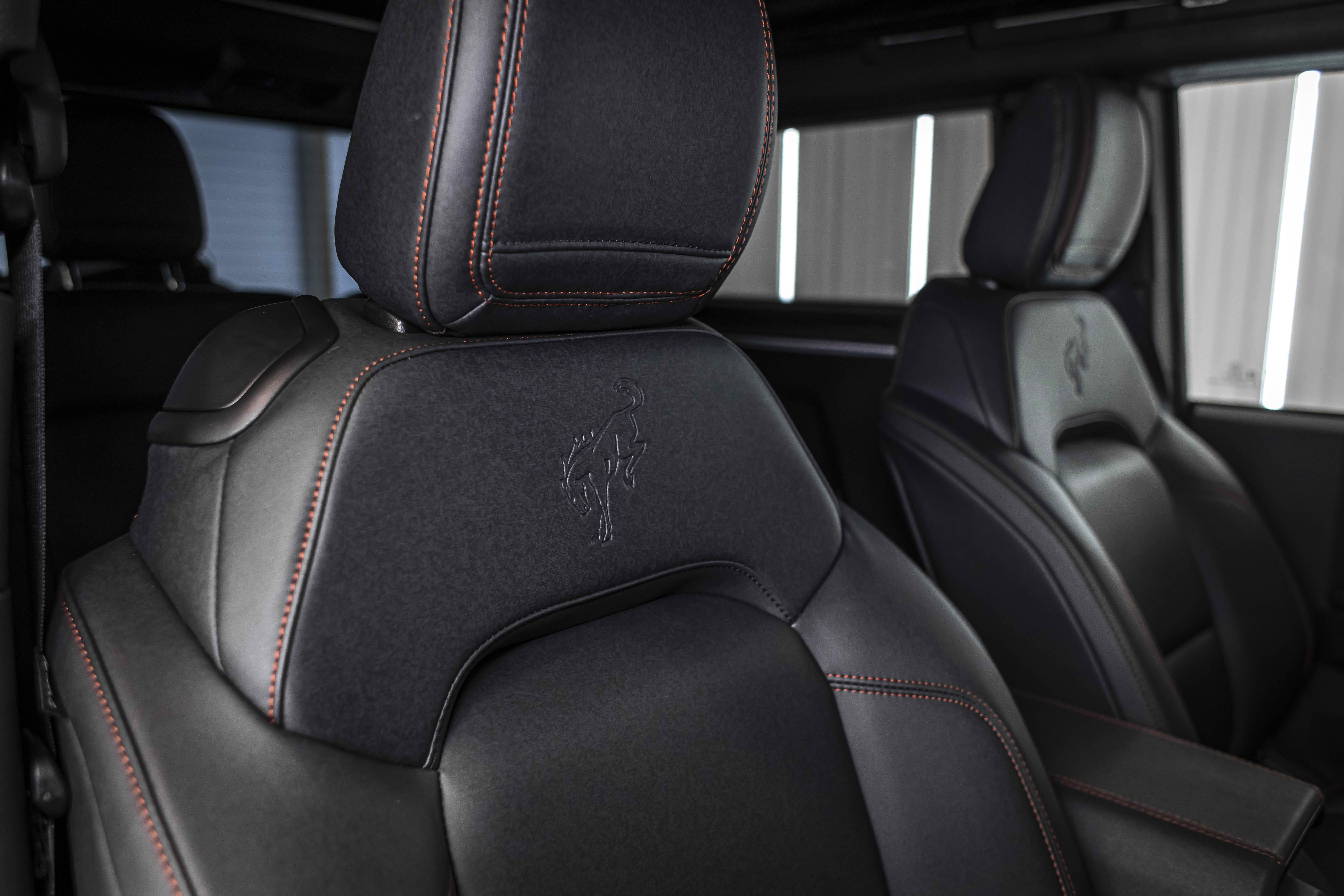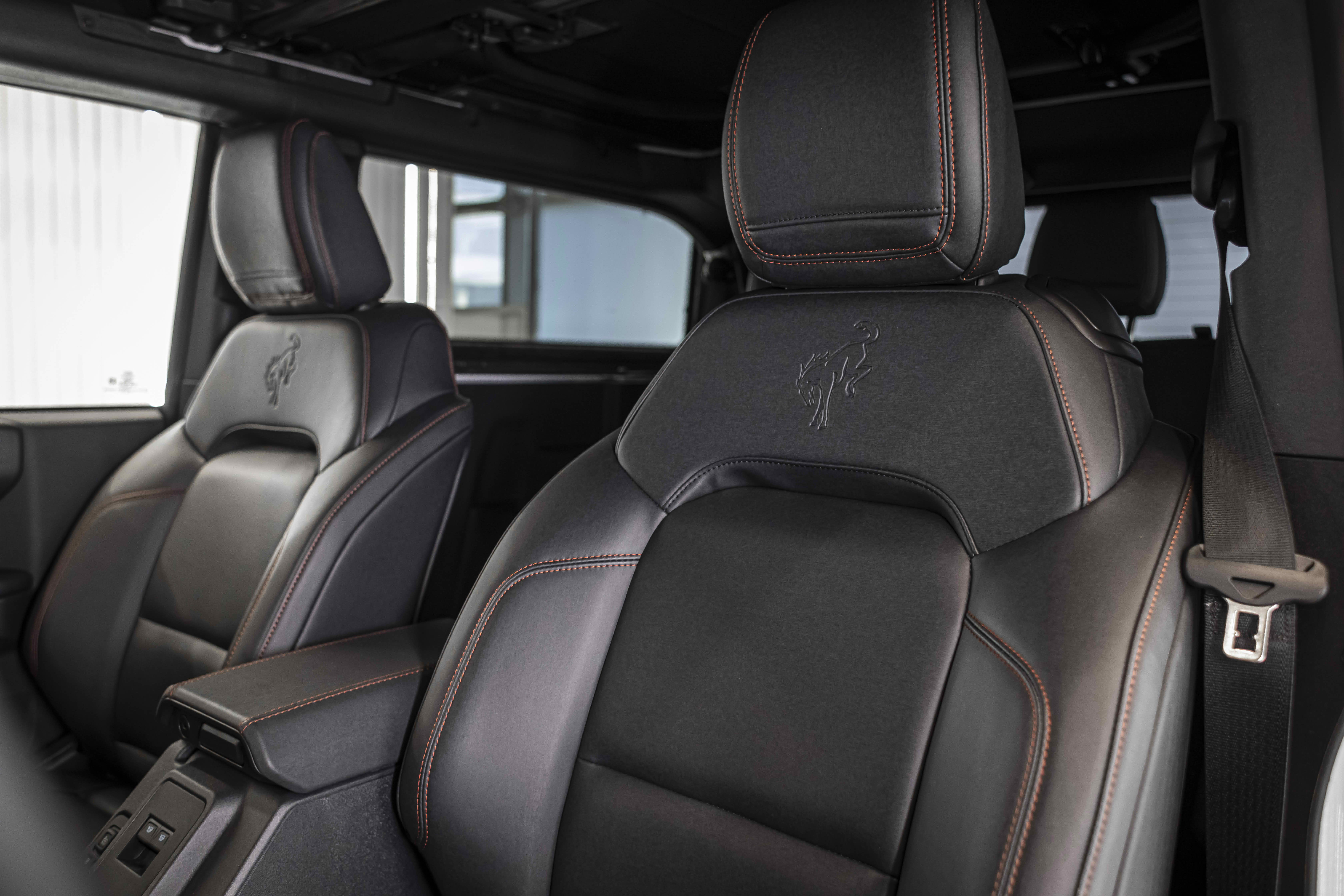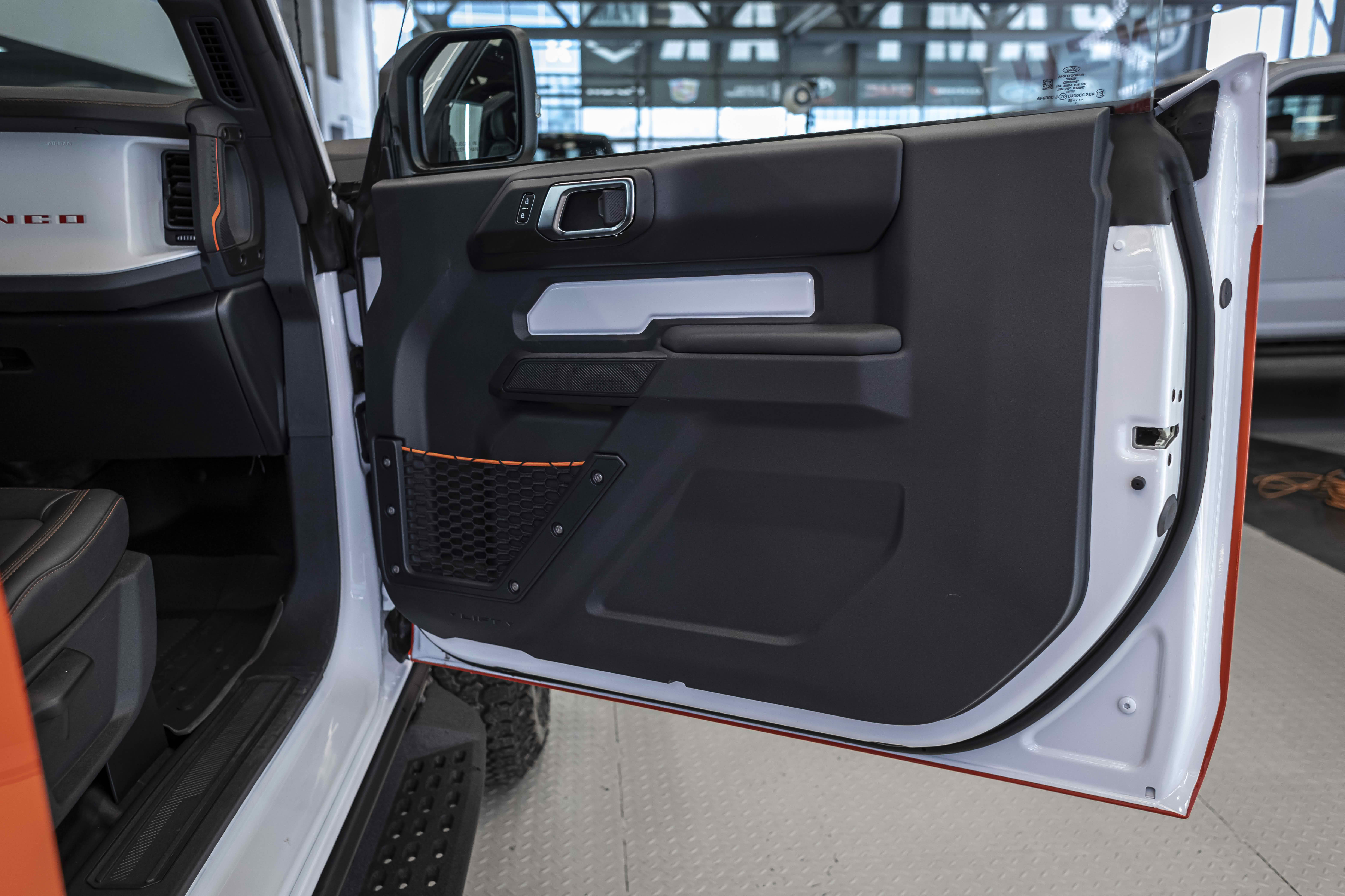 Stroppe Edition выделяется уникальной цветовой гаммой: Atlas Blue, Oxford White и эксклюзивный Code Orange, ранее доступный только для Raptor. Белая решётка радиатора с оранжевой надписью «Bronco», матово-чёрный капот и задняя дверь, стальные бамперы, оранжевые буксировочные крюки и 17-дюймовые чёрные колёса — всё это подчёркивает ретро-стиль и готовность к приключениям.