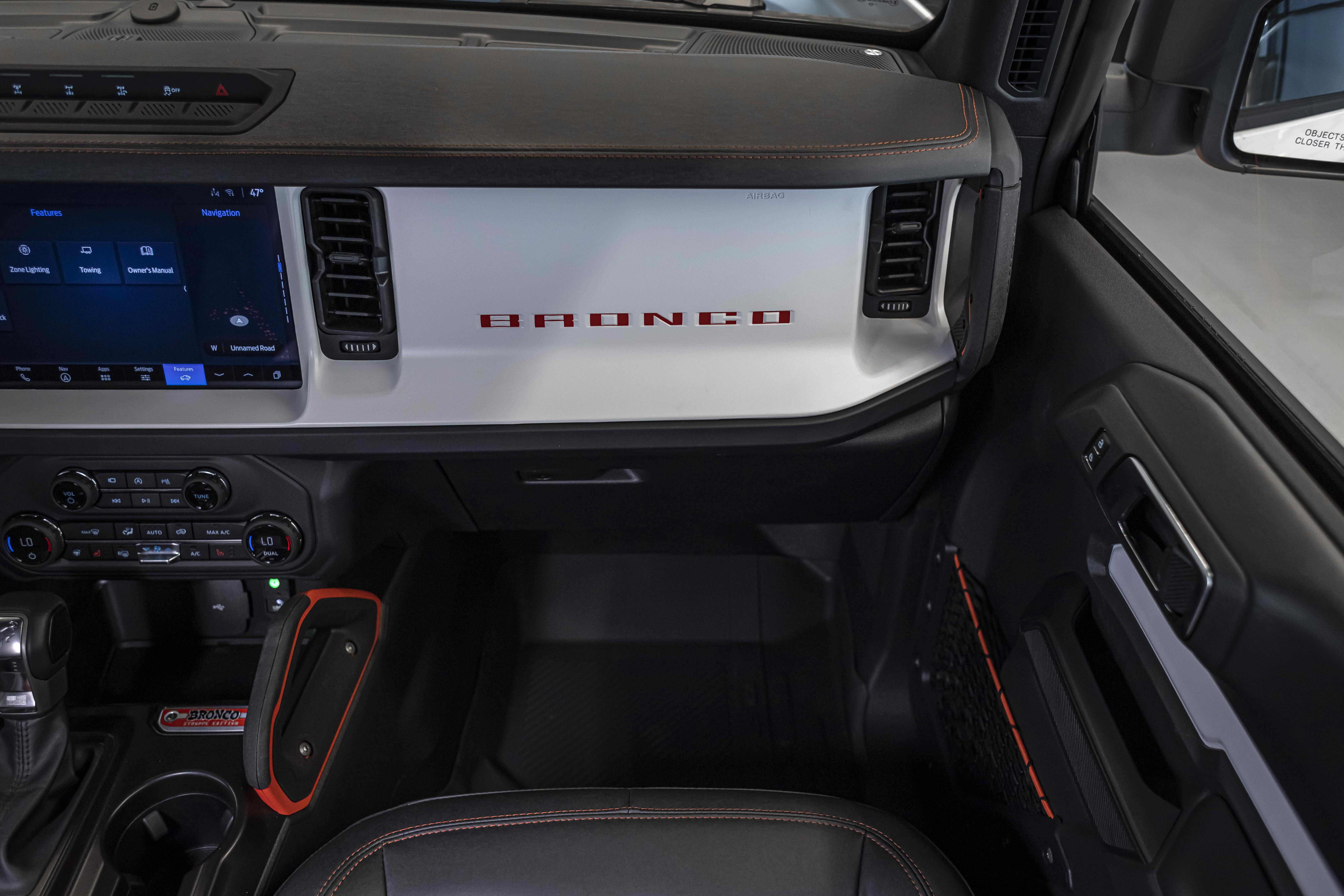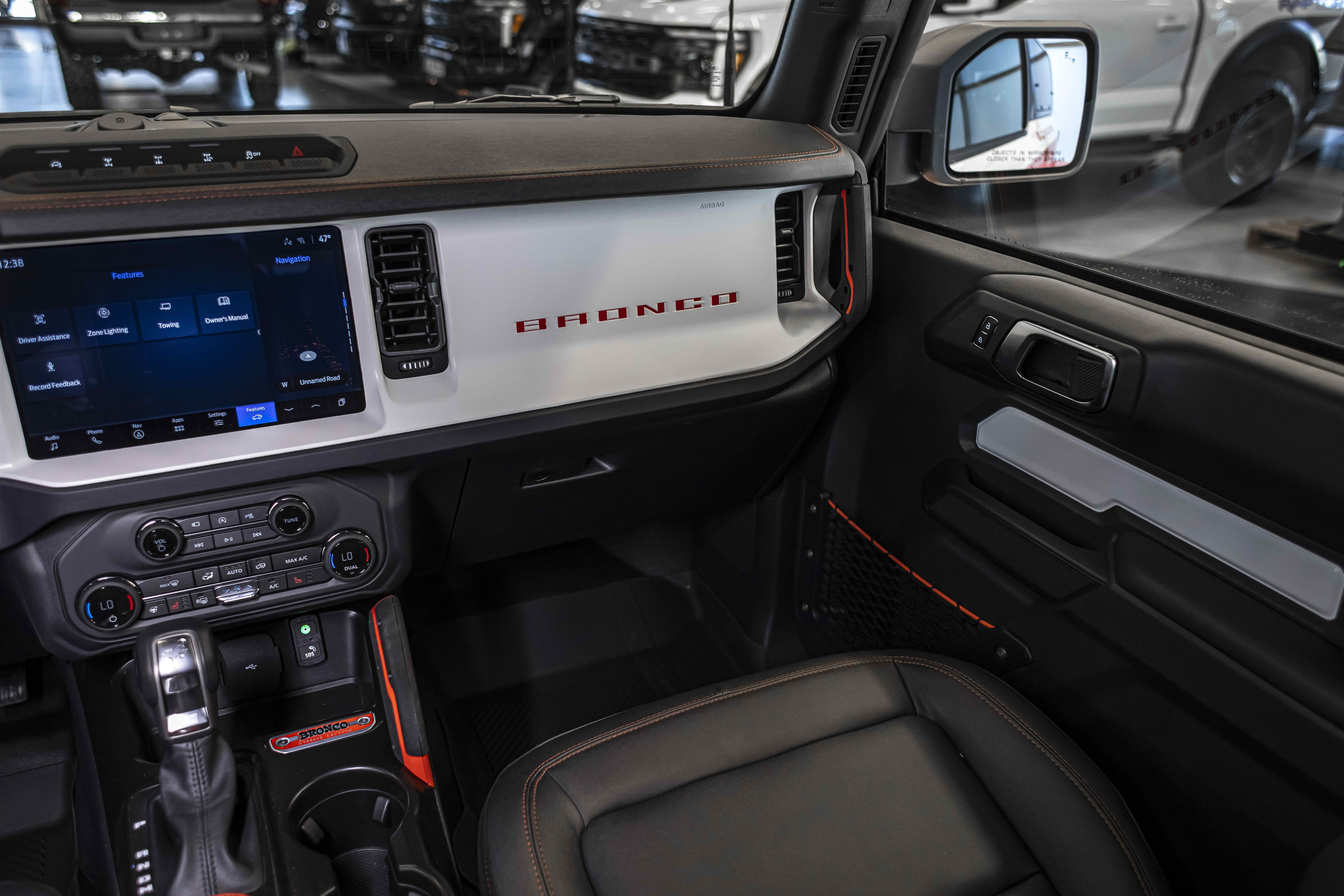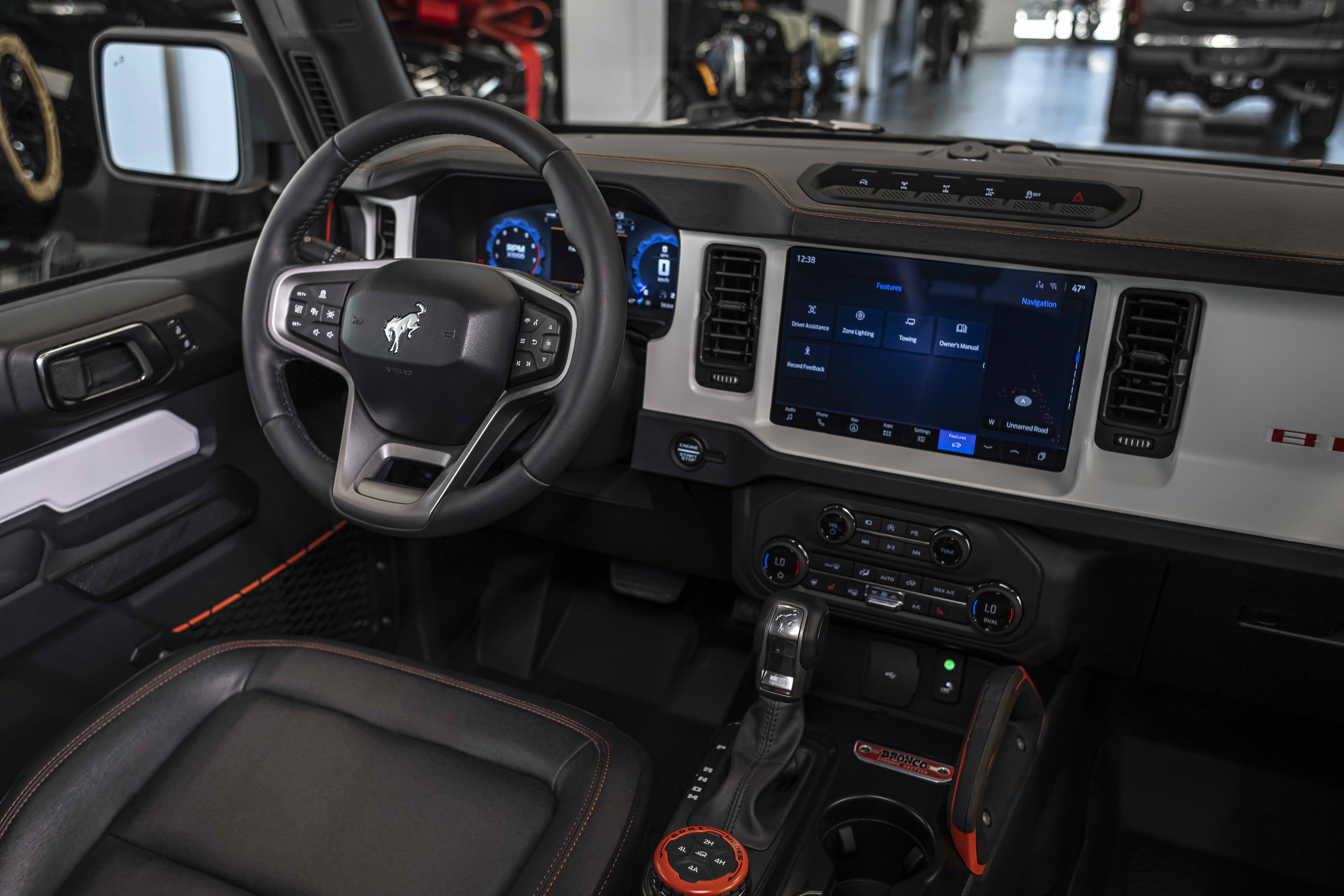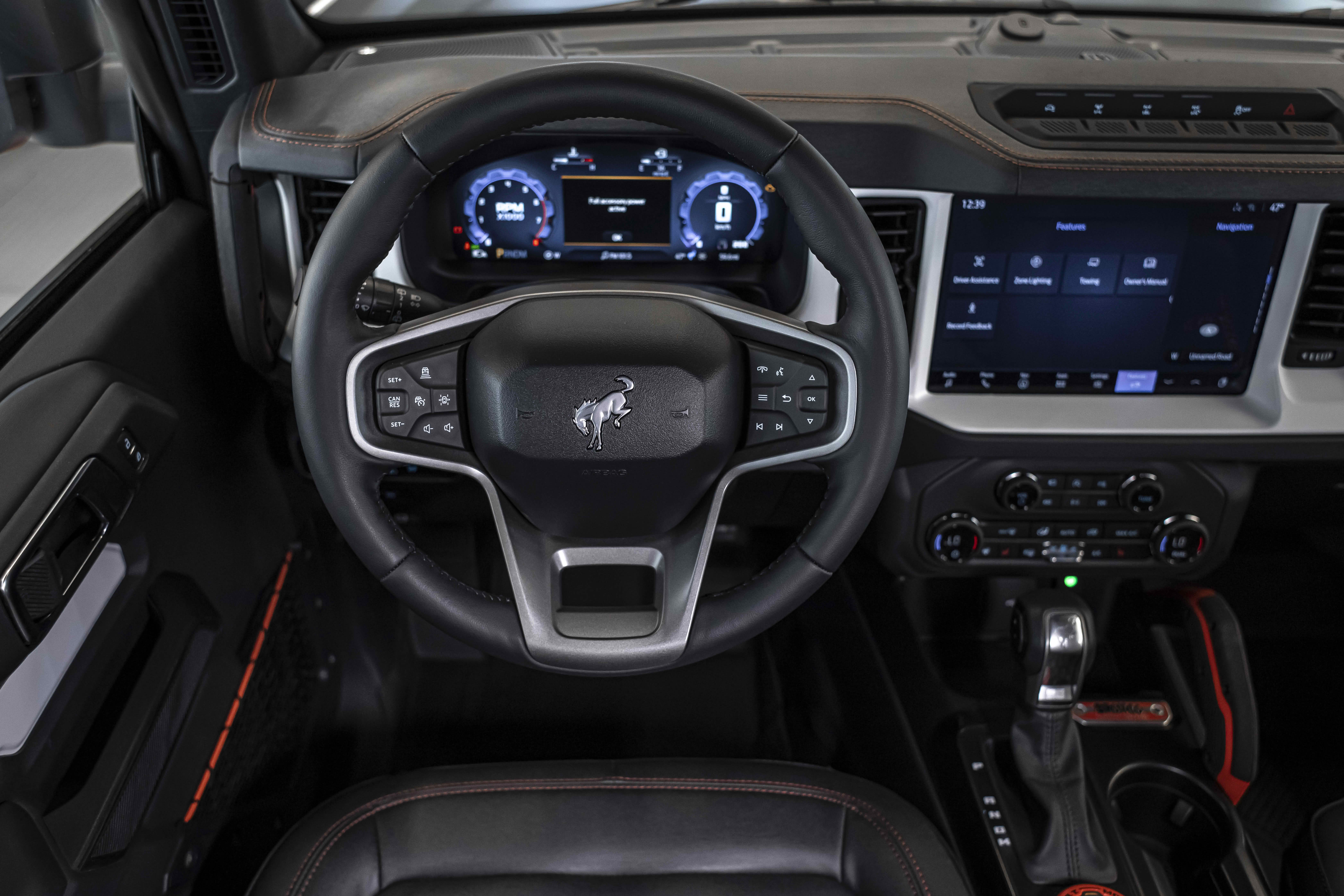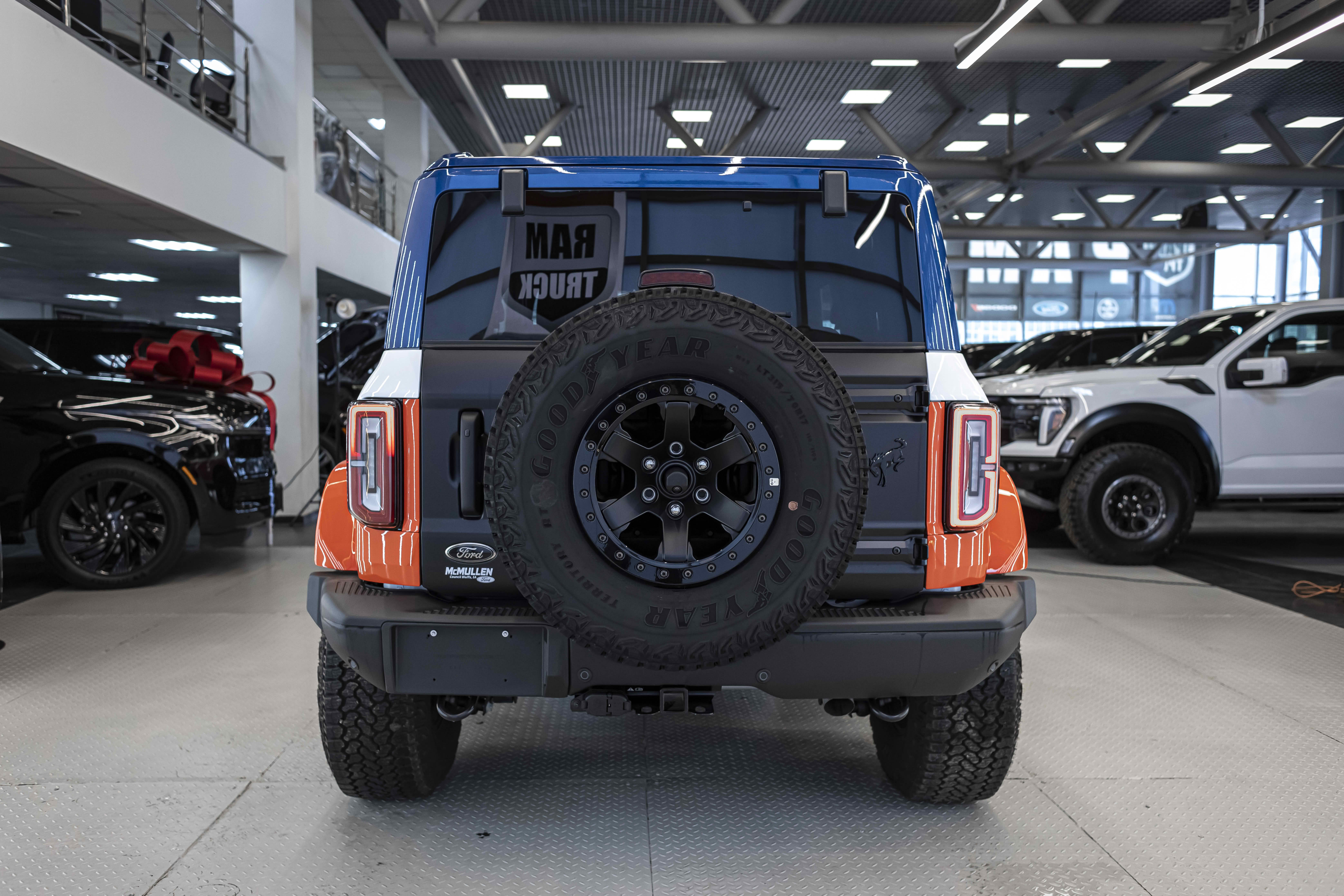 Stroppe Edition выделяется уникальной цветовой гаммой: Atlas Blue, Oxford White и эксклюзивный Code Orange, ранее доступный только для Raptor. Белая решётка радиатора с оранжевой надписью «Bronco», матово-чёрный капот и задняя дверь, стальные бамперы, оранжевые буксировочные крюки и 17-дюймовые чёрные колёса — всё это подчёркивает ретро-стиль и готовность к приключениям.