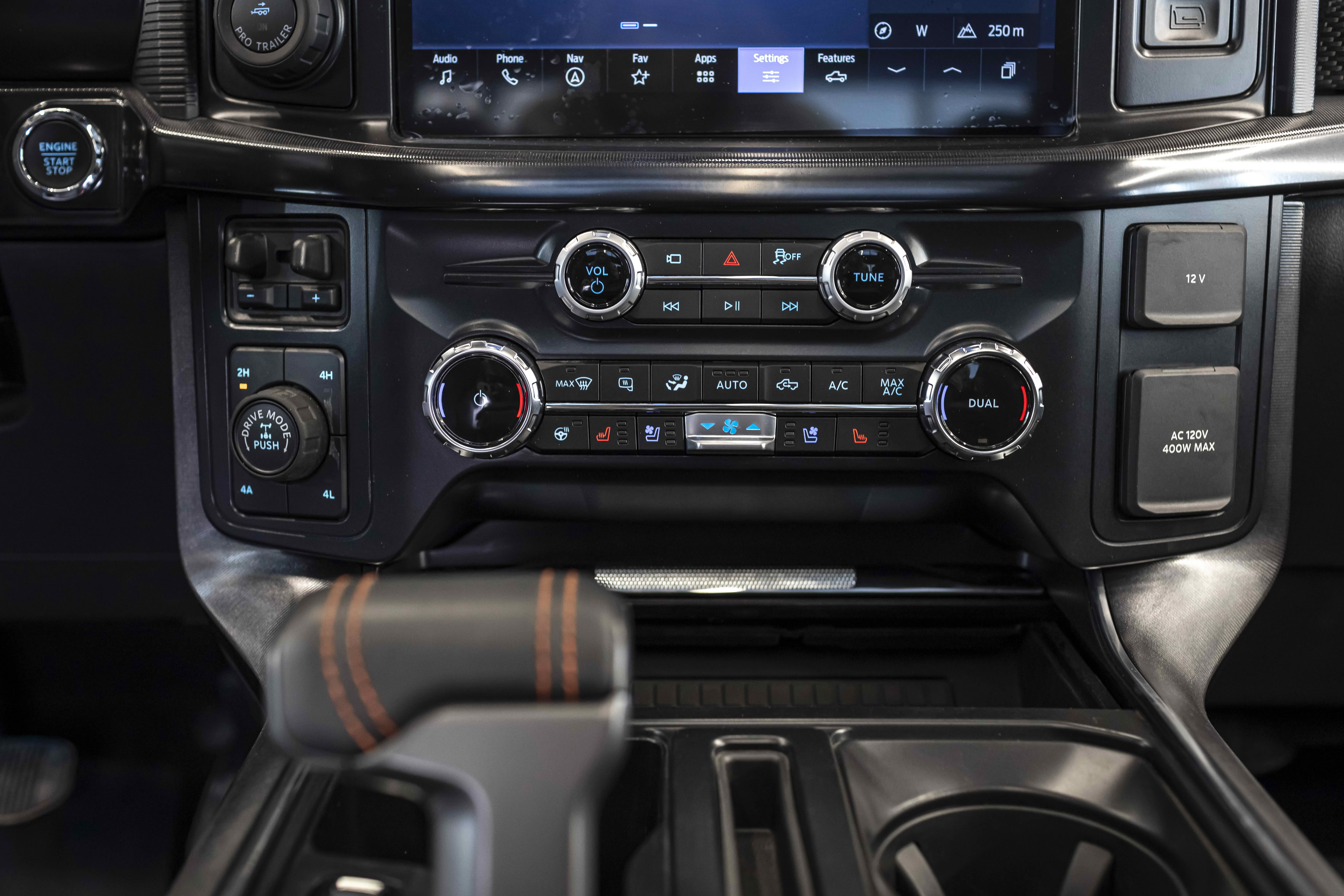 - Режимы вождения: Normal (нормальный режим), Sport (спортивный режим), Tow/Haul (режим буксировочной тяги), Slippery (режим скользкой дороги), Off-Road (внедорожный режим), Baja (режим пустынной местности), Rock