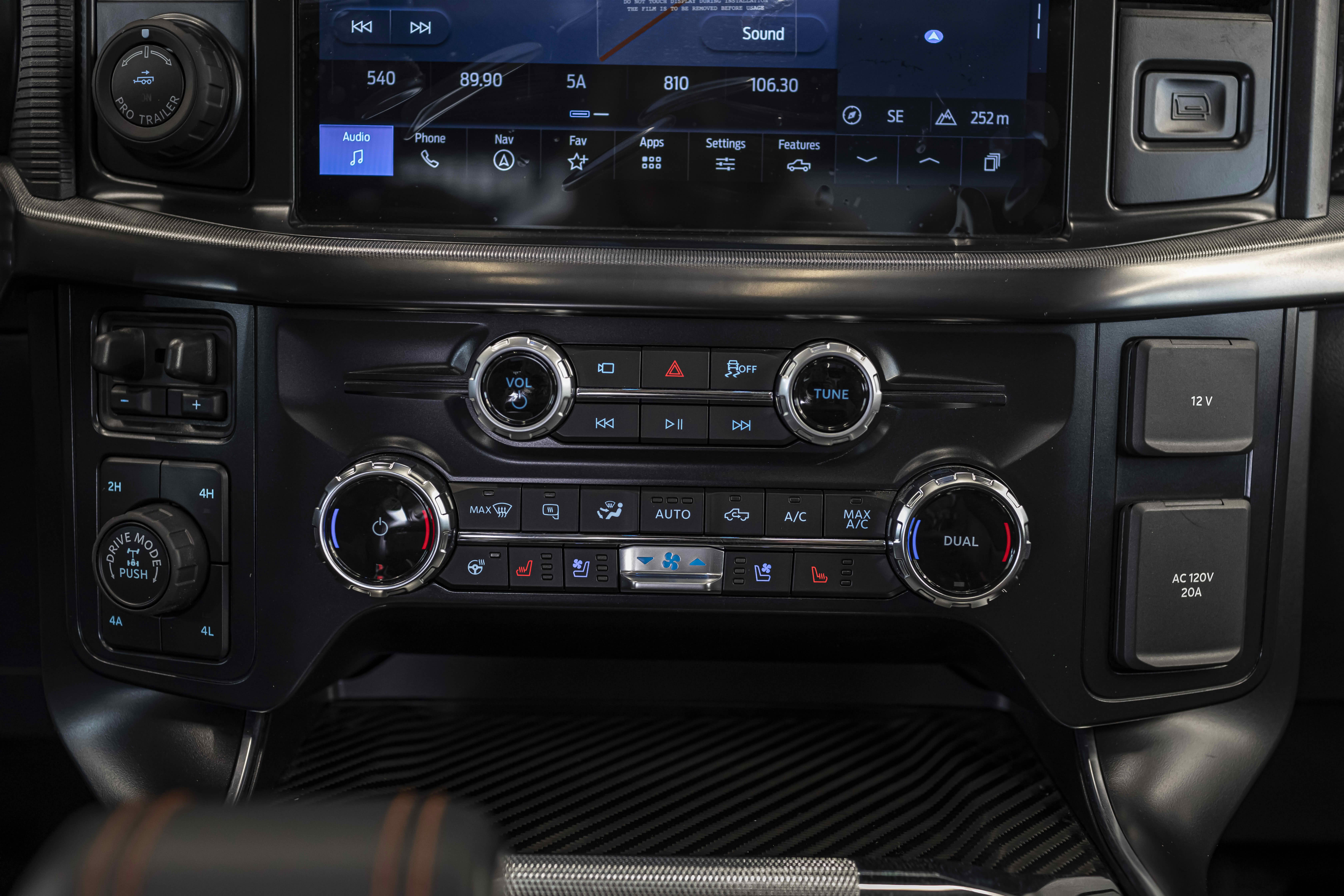 - Режимы вождения: Normal (нормальный режим), Sport (спортивный режим), Tow/Haul (режим буксировочной тяги), Slippery (режим скользкой дороги), Off-Road (внедорожный режим), Baja (режим пустынной местности), Rock Crawl (режим каменистой дороги)