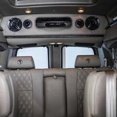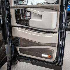 Отделка салона | Стилизованные под дерево пластиковые аппликации на дверных панелях, кожаная окантовка окон с двойной прошивкой, кожаная отделка дверей, кожаная отделка потолочных панелей с ячейками для хранения (только для спортивной крыши); Вставки из фибергласса R-11 |